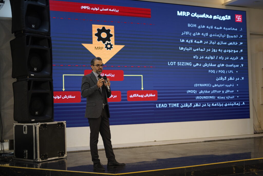 در ادامه، امیر قربانی، مدیر محصول ماژول برنامهریزی تولید و تأمین همکاران سیستم، به تشریح قابلیتها و دستاوردهای این راهکار پرداخت و نشان داد چگونه مدیریت بهینه سطح موجودی، برنامهریزی ظرفیت تولید و هماهنگی میان واحدها میتواند به بهبود عملکرد عملیاتی شرکتها منجر شود.